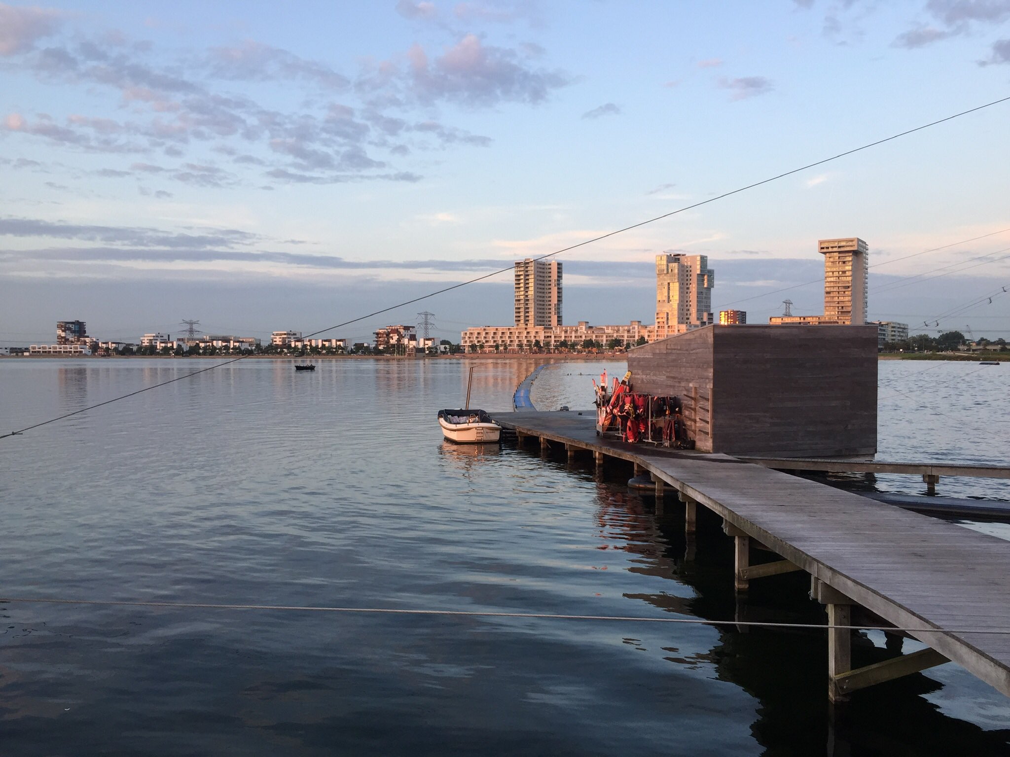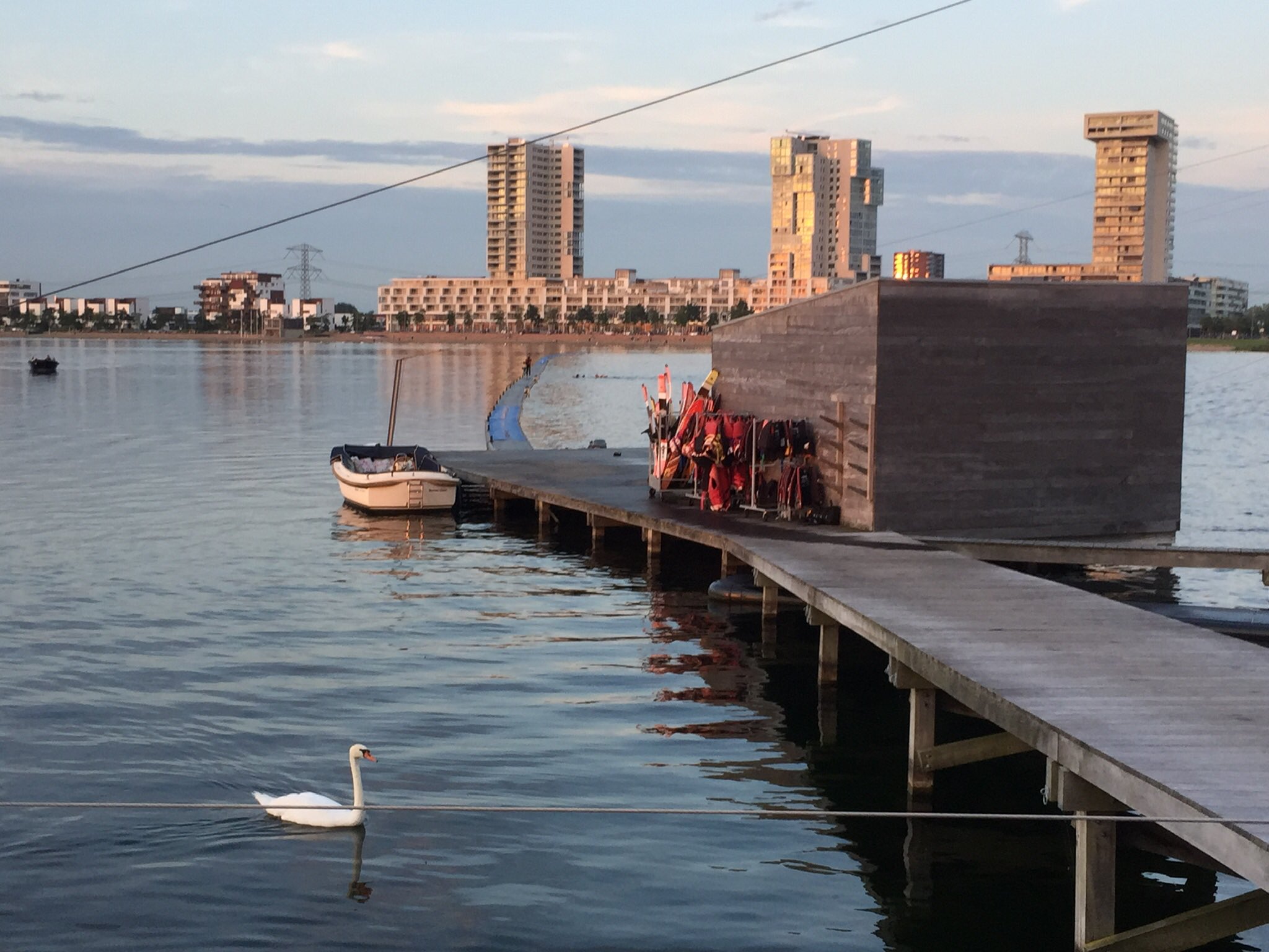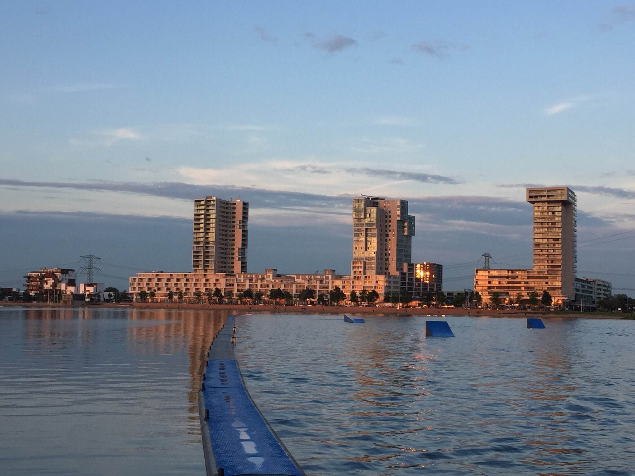Schitterende foto’s van Nesselander – en commissielid – Antoinette Roetgerink van het cablepark Nesselande als ook de skyline gezien vanaf het water, de Zevenhuizerplas.