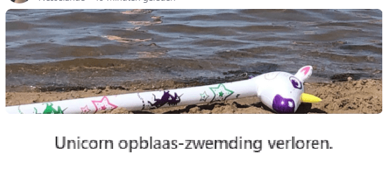 Gekleurde ‘zwemdingen’. Ook rondom en in de Zevenhuizerplas zijn deze opblaasbare sprookjesfiguren populair. In de Nesselande Nextdoor op 21 juli 2021 een opmerkelijk oproep: