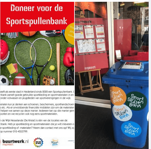 Sinds 2020 worden sportspullen, zoals kleding en sportmaterialen, verzameld en vervolgens worden deze verdeeld onder leden van sportverenigingen in de wijk. De gemeente Rotterdam kent als eerste stad in Nederland een Sportspullenbank.