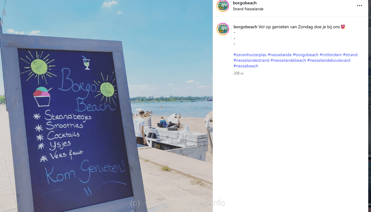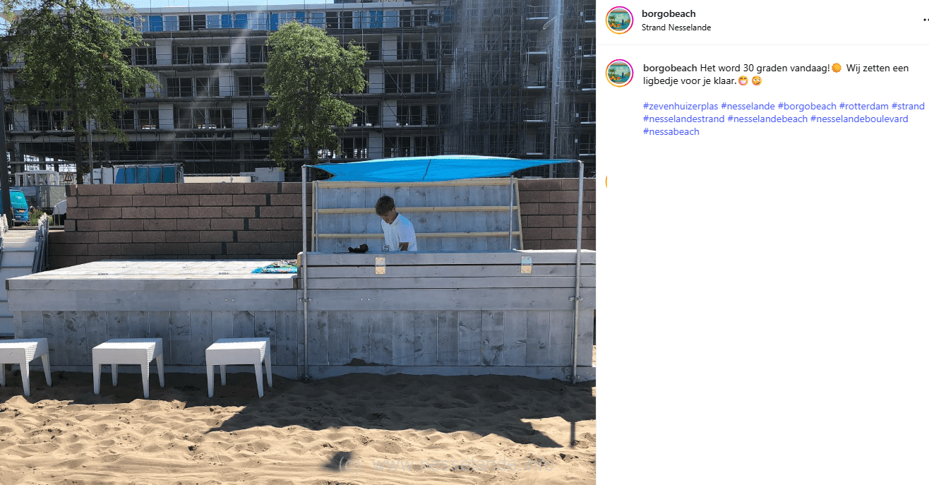 Bedden zijn al jaren te huur aan en op het strand Nesselande. Ook de ijscokar staat al jaren op het strand van Nesselande. Sinds de zomer van 2021 dan ook een strand-cocktailbar. Borgo beach zegt: