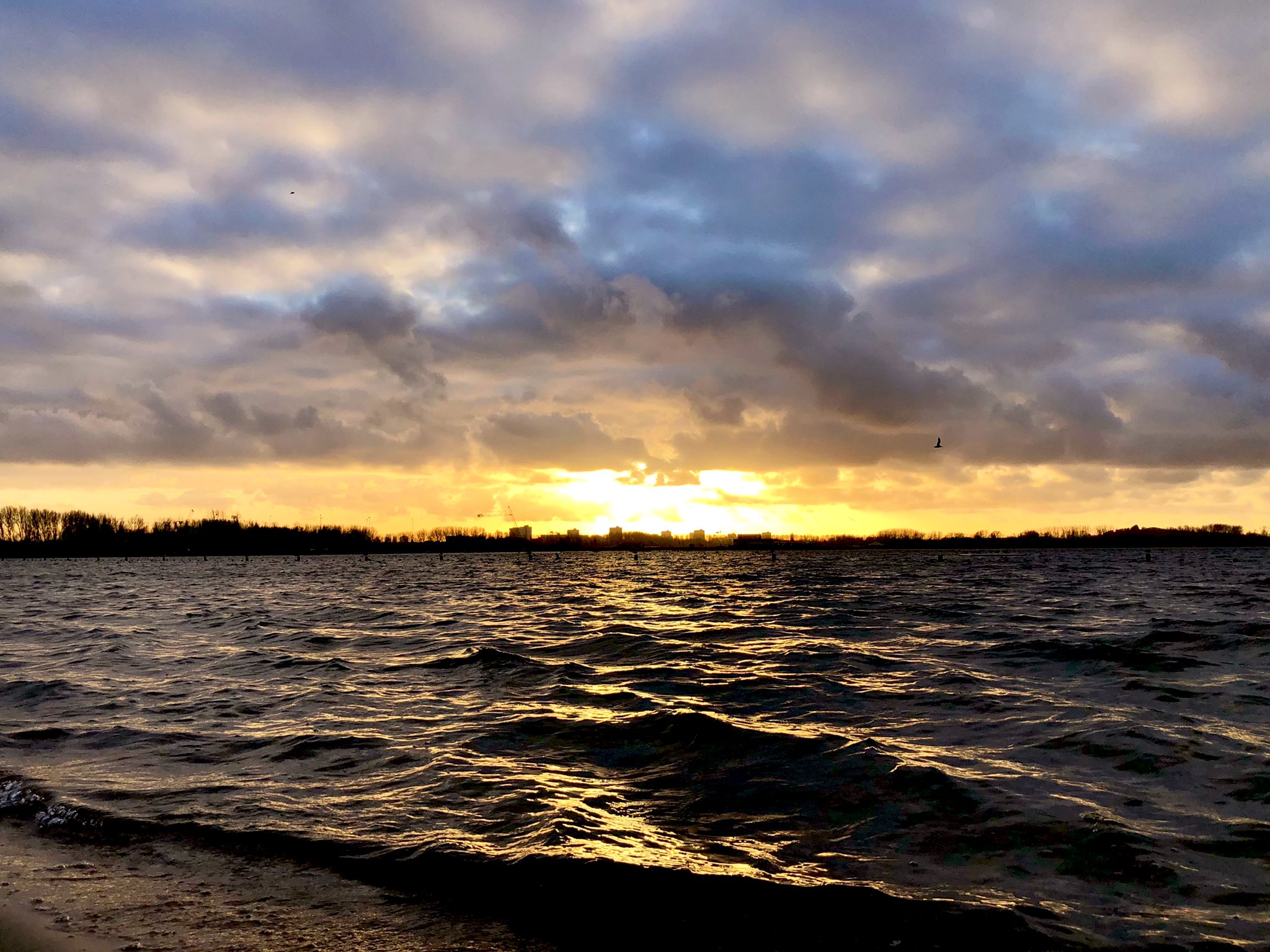 Deze foto van de zonsondergang boven strand Nesselande – Zevenhuizerplas is van januari 2022.