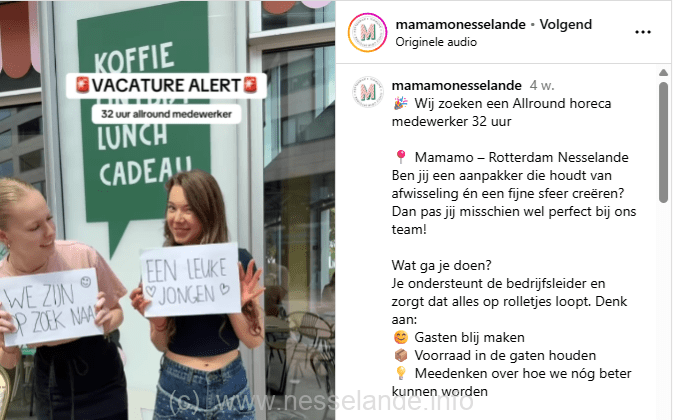 Stuur ze een Instagram-DM, mail je CV naar monique@mamamo.nl of loop gewoon even binnen bij Mamamo. Ze leren je graag kennen!