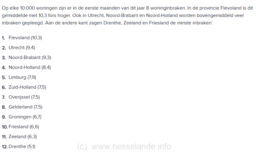 - Lisse: 13,2 inbraken per 10.000 woningen